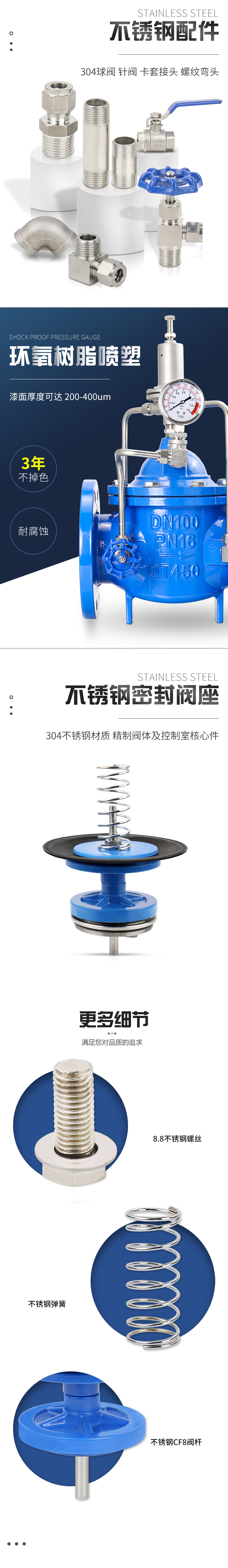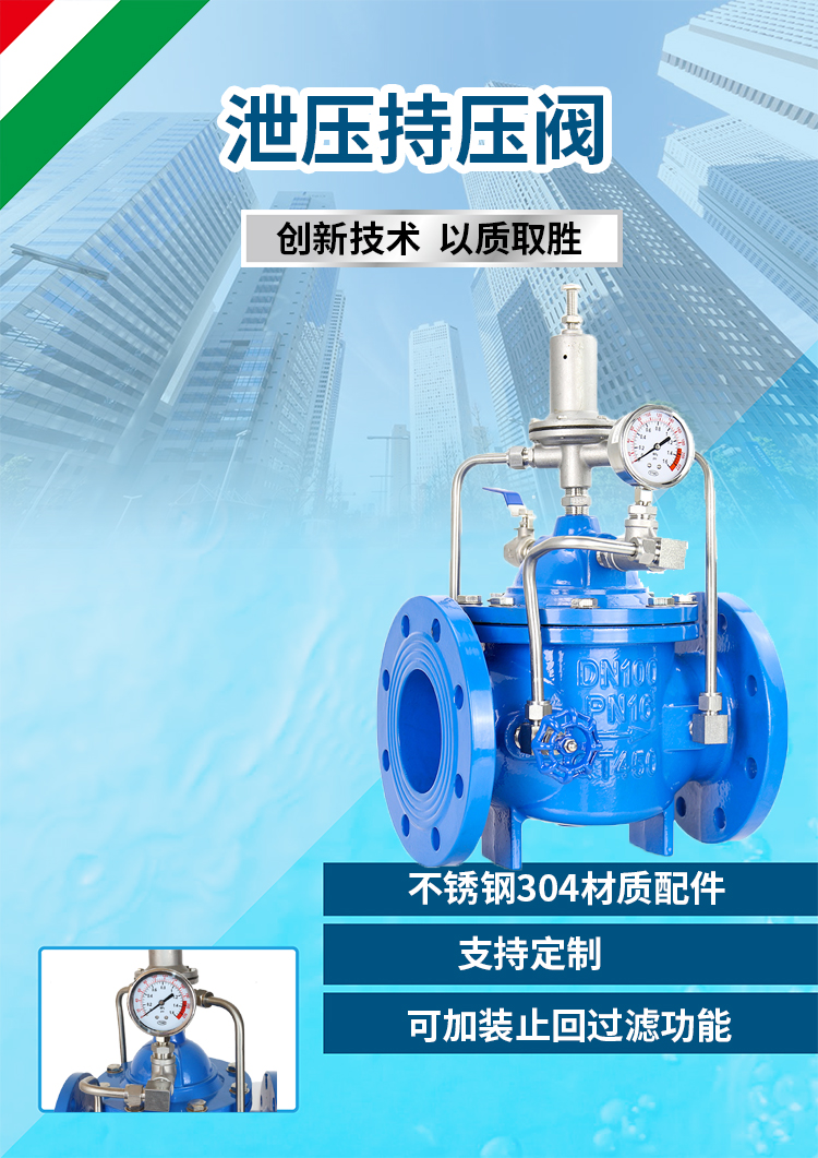 應用領域:500X不銹鋼持壓泄壓閥安全穩壓水利控制閥消防自來水泵泄水