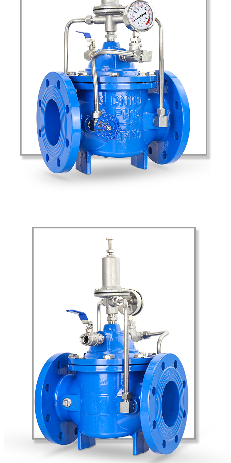 500X安全泄壓閥由主閥、泄壓/持壓導閥針閥、球閥、微形過濾器和壓力表組成水力控制接管系統。利用水力自動操作,可以作泄壓閥又可作持壓閥用。作泄壓閥用時,維持供水路壓力在設定的安全值之下;做持壓閥用,維持主閥上游水壓在設定值之上,保持主閥上游供水壓力。500X安全泄壓閥利用水力自力控制,不需要其它裝置和能源,保養簡便,一閥多用。